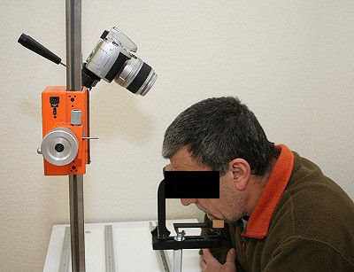Mittels Übersichtsfotografien der behaarten Kopfhaut kann der Erfolg einer Behandlung von Haarausfall überprüft werden. Im Verlauf der Behandlung können zu verschiedenen Zeitpunkten Bilder der Kopfhaut angefertigt und dann miteinander verglichen werden. Hierzu ist es erforderlich, dass die Fotos exakt das gleiche Haarareal unter dem gleichen Winkel abbilden. Um diese Genauigkeit zu gewährleisten, bedient man sich stereotaktischer Geräte, mit deren Hilfe der Kopf und die Kamera immer wieder in die gleiche Position gebracht werden können (Abblidung 1).